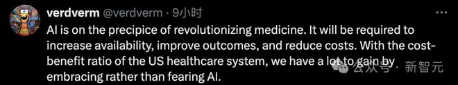 还有网友表示,AI即将彻底改变医学。我们需要用它来提高可用性、改善疗效,降低看病成本。