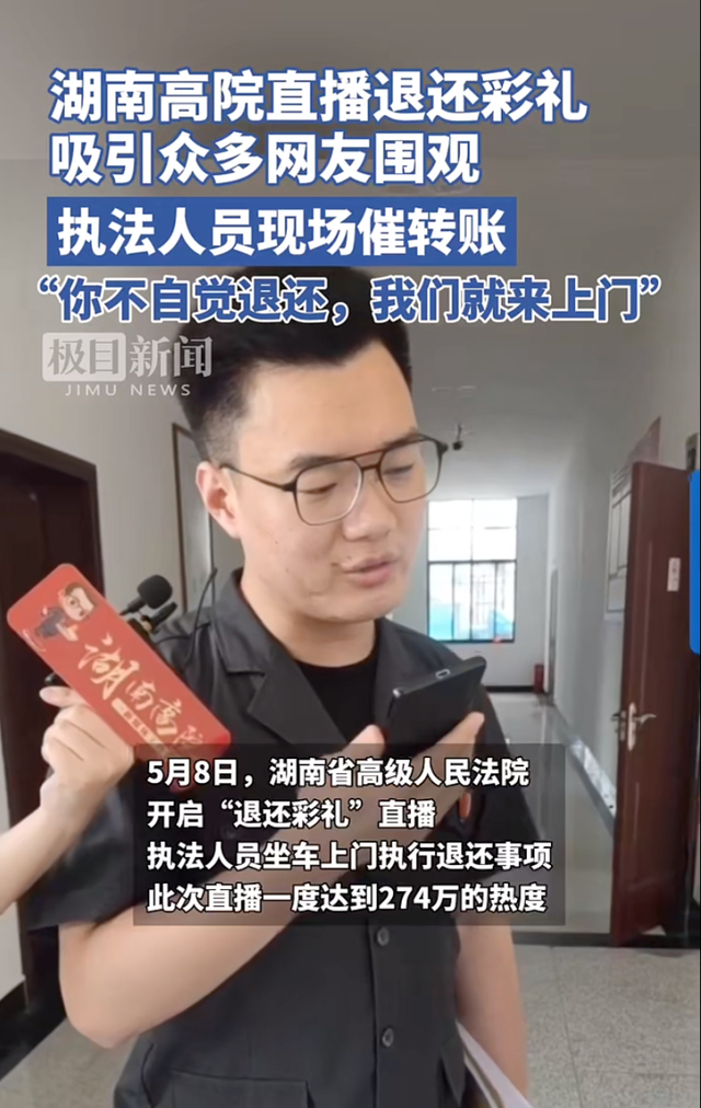 湖南高级人民法院直播退还彩礼,274万人次围观