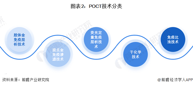 按照技术的不同,POCT技术主要有胶体金免疫层析技术、斑点金免疫渗滤技术、荧光定量免疫层析技术和干化学技术、免疫比浊技术等。