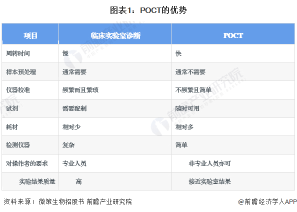 基于以上要素,POCT与传统实验室检验相比,虽然在精细度和自动化方面不具备优势,但由于其对场地、仪器、操作人员、样本处理等要求低,在便捷性、检测速度、成本等方面优势明显,真正实现了以病人为中心并有效扩大检测范围,有利于对疾病的早发现、早诊断和精准治疗,不仅可以减轻患者在病情后期医疗过程中的痛苦,也通过早诊早治控制医疗费用。