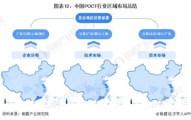 POCT行业资金壁垒、技术壁垒较高,行业发展与地区经济基础、技术水平等息息相关。东部发达地区经济实力较为雄厚,技术水平整理高于中西部地区,资本市场活跃,产业链相关企业集聚,发展潜力较大。