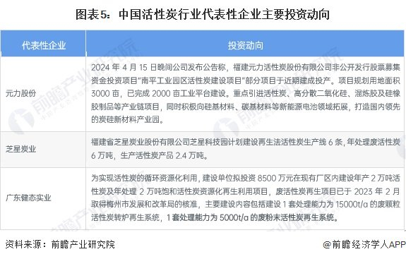 近年来,活性炭行业代表性公司中,投资动向主要包括在投资扩建活性炭生产项目,或投资循环资源化利用项目,投身环保产业。