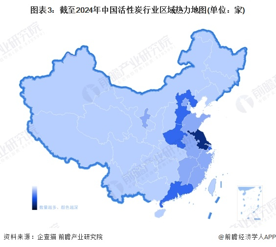 活性炭行业产业链区域热力地图:江苏省为主要聚集地