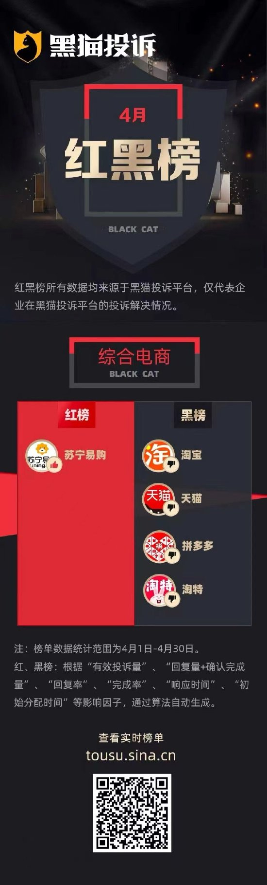 4月黑猫投诉综合电商领域红黑榜:淘宝按月到账年费会员暗藏陷阱,商家跑路快退款难
