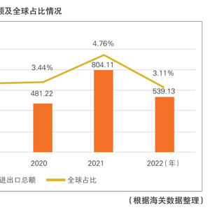 联合国有关机构统计数据显示,2018—2022年的五年间,中国医药产品贸易总额由367.66亿美元升至539.13亿美元,全球占比稳定在3.5%左右,全球排名由第十位升至第九位(详见图1)。