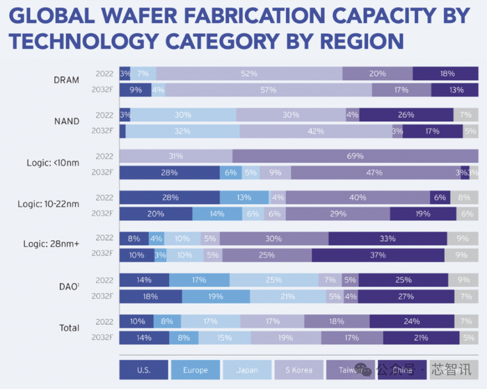 2032年美国将控制全球28%先进制程产能,中国大陆占比仅3%!