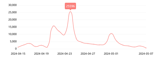 2024年4月15日-5月7日文娱演出消费维权舆情走势图