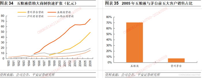 五粮液把握大商崛起风口,快速实现扩张。20世纪80年代末期,白酒仍然处于供不应求的卖方市场,同时国家放开名酒定价权,五粮液积极扩产,同时持续涨价,奠定名酒基因。在该阶段,民营大商在终端的精细化管理、客情维护等方面较国营的糖酒公司更优,因而快速崛起,成为白酒销售的主流渠道。五粮液在渠道方面,采用“OEM+大商制”的模式,五粮液负责生产,总代负责贴牌销售,从而公司能够以较低的渠道费用快速铺市,抢占白酒市场,快速实现扩张。