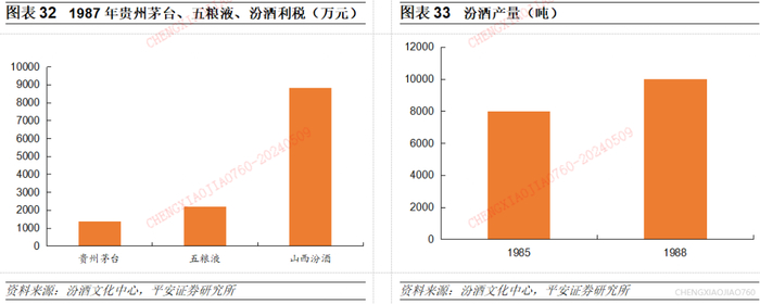 计划经济初期产能为王,汾酒销量全国领先。改革开放初期,市场化机制尚未完善,白酒渠道以国营糖酒公司为主,仍然处于供不应求的卖方市场,而清香型的生产不受窖池约束,周期短、出酒率高且成本低,因此汾酒在行业处于领先地位。据中国酿酒工业年鉴,1985年汾酒产量突破8000吨,1988年汾酒产量超1万吨,为当时13种名酒的一半;1988-1993年,汾酒连续6年在全国销量排名第一,1994年汾酒在上交所上市,成为中国白酒第一股。