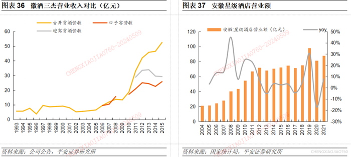 口子窖借助酒店渠道,实现快速增长。1997年安徽口子集团成立,1998年公司推出口子窖5年,并率先引入盘中盘模式,即将营销资源集中投入到核心的经销商、酒店,从而利用酒店的小盘带动消费者大盘,依靠核心意见领袖实现产品推广。据国家统计局,2000年至2012年安徽省星级酒店营业额快速增长,并且该阶段大量餐饮企业谢绝自带酒水,口子窖凭借着酒店盘中盘模式,实现快速增长。