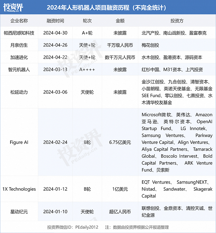 VC/PE前仆后继地涌入这条科幻赛道。据投资界不完全统计,近一年人形机器人领域融资达数十起。