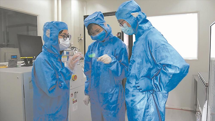 厦门卓芯科技有限公司科研团队检查纳米压印成果。