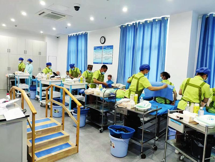 5月,市一医院在6个临床科室启动“无陪护”病房试点工作,由经过规范化培训的医疗护理员为住院患者提供24小时生活照护等服务。护理员在护士指导和管理下,根据患者病情和需求提供陪护和生活照料服务,实行班组制照护模式,每个科室根据患者签单需求配置5至8名医疗护理员,提供24小时班组制服务。