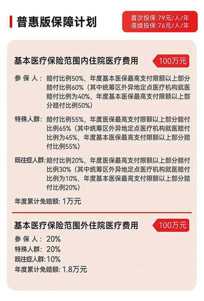 ●连续参保享优待。连续参保用户再参保可立享每位3元优惠,即普惠版连续投保76元/人/年,尊享版连续投保166元/人/年。