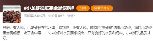 “小龙虾很脏完全是误解”的词条冲上热搜