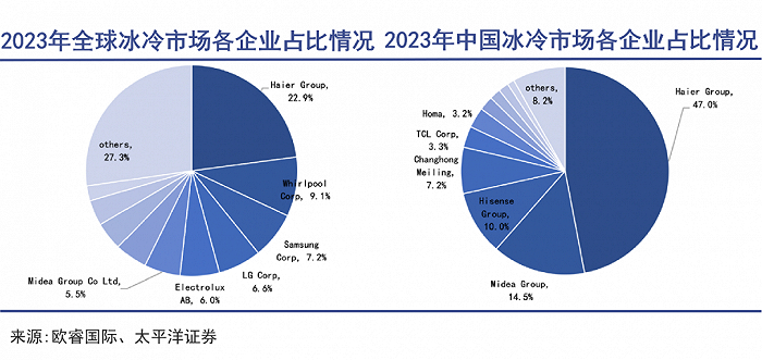 2023年,全球冰冷销量微降,但零售额却增长3%至1084.58亿美元,国内零售额增长不到2%。据测算,海外市场规模是国内的近4倍,价值量更大。