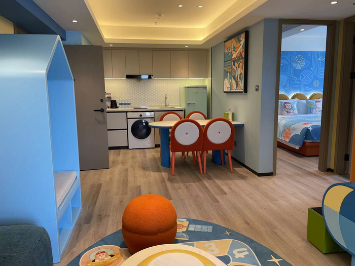 据其介绍,上海星河吉酒店共284套客房,包括高级大床房、两房家庭套房等房型满足旅客不同需求,客房面积为27-60平方米。其中,拥有三种不同主题的亲子客房为酒店主力房型,共56间。