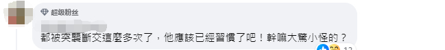 对此,有岛内网友表示,“都被突袭断交这么多次了,他应该已经习惯了吧!干嘛大惊小怪的?”↓