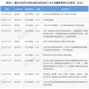 根据代表性上市企业公告的梳理,生成式AI行业的上市公司融资手段主要通过定向增发方式进行。从整体来看,我国生成式AI上市企业融资目的主要是用于大模型项目研发和补充流动资金等。截至2024年中国生成式AI行业代表性上市企业主要的融资事件如下: