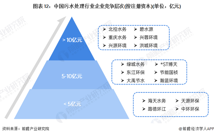 目前,我国污水处理行业市场参与者众多,主要参与者有跨国水务集团、大型国有企业以及民营企业,从企业规模来看,污水处理行业企业规模相对较大,企业注册资本较高,其中,注册资本在10亿元以上的大型企业有北控水务、碧水源、兴蓉环境、首创环保等;注册资本在5-10亿元之间的企业有绿城水务、节能国祯、大禹节水等;注册资本小于5亿元的企业有天源环保、中环环保等。从企业竞争力来看,大型国有上市企业如北控水务、首创股份、兴蓉环境等,凭借雄厚的资本实力、丰富的社会资源等优势,占据行业主导地位,在全国范围内积极开拓抢占市场,是跨国水务企业强力的竞争对手。