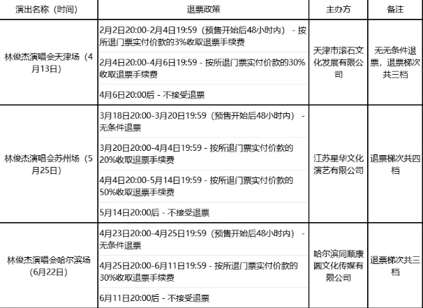 在演出开始前的维权问题主要集中在了退票困难方面,江苏省消保委以林俊杰演唱会为典型案例,指出林俊杰演唱会存在同一演出在不同城市的退票政策不相同的问题。林俊杰5月25日苏州场演唱会,退票手续费按照时间段分为4个梯次:无条件退票、门票价格20%、门票价格50%、不支持退票,根据其演唱会380-1880元的票价来计算,退票手续费小到几百大到近千元。同样是林俊杰演唱会,哈尔滨6月22日场次的演唱会,退票按时间分3个梯次:无条件退票、门票价格30%和不支持退票。而天津4月13日的演唱会则不存在无条件退票规则,退票按时间段分为门票价格3%、门票价格30%以及不支持退票三个梯次进行划分。同一个歌手的演唱会,不同地区退票政策不统一,容易对消费者造成误导。