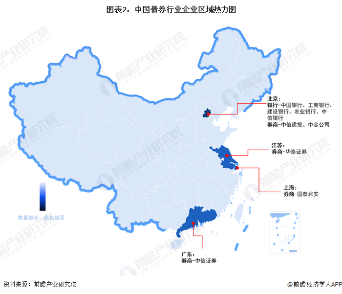 从区域分布来看,银行机构主要分布在北京地区,券商的分布则较为分散,在北京、上海、广东、江苏等地区均有分布。