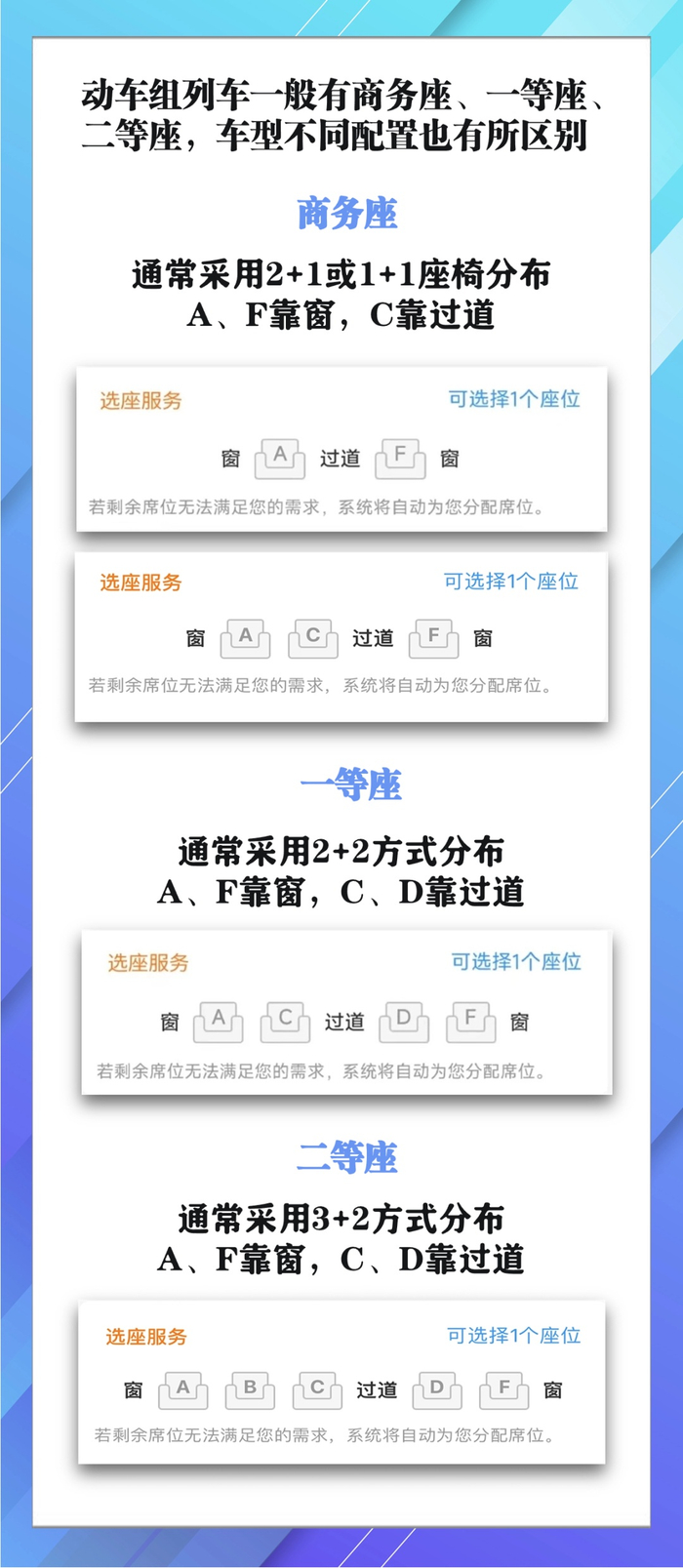 选择同一席别的座位