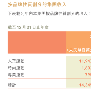 2023年,大众运动、时尚运动和专业运动分别为特步国际贡献约119亿元、16亿元和8亿元的收入。
