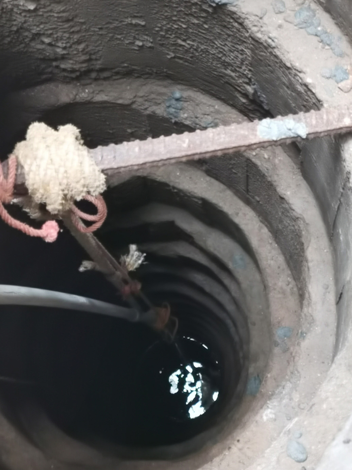 4月中旬的污染事件发生后,乡村组织村民对八公分村的水井进行清洗。参与清洗的村民黄水华介绍,当时抽水机从老井抽水,“才抽了几分钟,好像就有猪屎浮上来。很臭,大家都戴着口罩。”清洗现场的照片显示,井下部位的水呈现黑色。