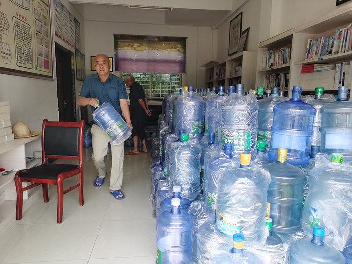 村民到村部领桶装水