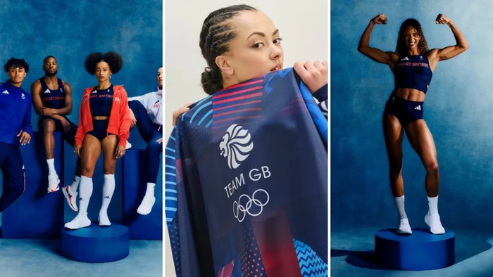 Adidas以英国国旗的红、白、蓝三色为基础进行设计,把国旗和“Great Britain”的字样点缀在运动服上。不同场合的衣服只有微妙的区别,奥运村穿着系列是明亮的海军蓝,而领奖服是白底红字,视觉上显得干净、整洁。