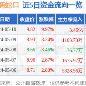 证券之星消息,招商蛇口涨停收盘,收盘价9.82元。该股于13点55分涨停,4次打开涨停,截止收盘封单资金为7377.33万元,占其流通市值0.09%。