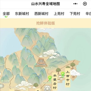 设计风格上,地图采用了手绘形式,以“山水兴寿”为主题,以“青山绿水”为主基调,通过国风形象生动展现了兴寿的一草一木、一砖一瓦。内容上,地图不仅提供了各村风貌特色的全览,还带有语音介绍功能,让您能更直观地了解每个景点的详细信息。部分村庄还设有二级地图,丰富展示了各村的商铺和旅游资源,让您能更全面地了解兴寿的旅游资源。