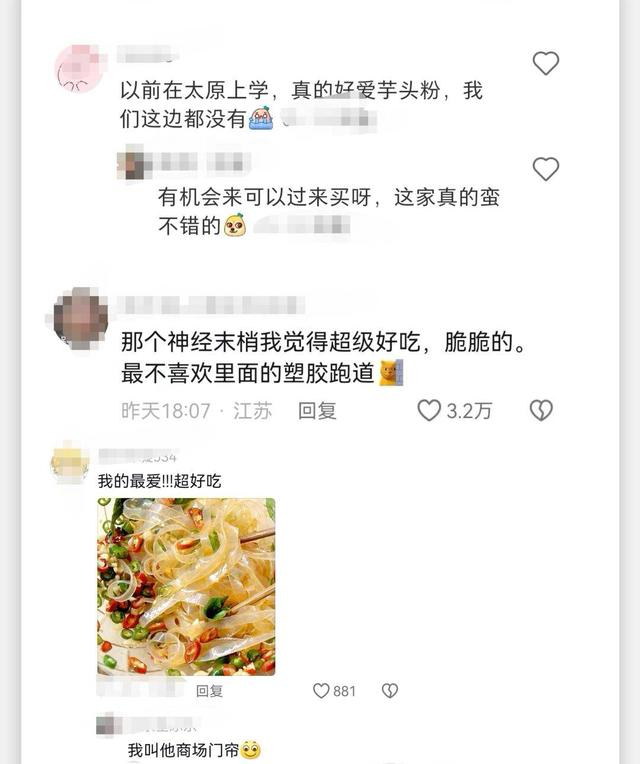 “‘神经末梢’口感脆爽,美味极了。”“‘塑胶跑道’在山西麻辣拌中味道绝佳,甚至煮火锅也是上佳之选。”“‘透明门帘’脆脆的、有嚼劲,根本停不下来。” “凉菜三巨头”以及独特的口感受到食客们的追捧。