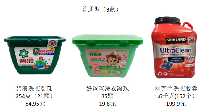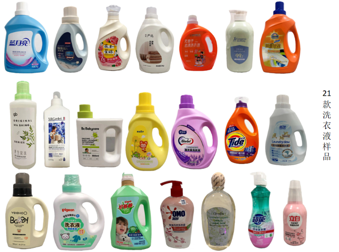 我们从线上线下购买了21款洗衣液和20款洗衣凝珠,其中包括5款内衣专用洗衣液、5款婴幼儿专用洗衣液和3款婴幼儿专用洗衣凝珠。