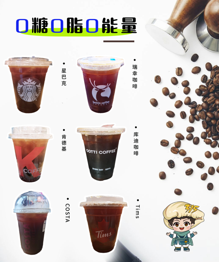 测评项目:测评参照GB 7101—2022《食品安全国家标准 饮料》、GB/T 30767—2014《咖啡类饮料》、GB 2760—2014《食品安全国家标准 食品添加剂使用标准》等国家标准,对样品的理化指标(咖啡因含量)、营养指标(能量、脂肪、总糖)、甜味剂(糖精钠、阿斯巴甜、安赛蜜、甜蜜素)等项目进行检测。