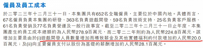棋牌游戏起家的家乡互动年报显示,投入更多资源开发新类型游戏,丰富产品组合。去年家乡互动招聘了更多的研发人员,虽然员工总数略有下降,但总人力成本上升24.06%。