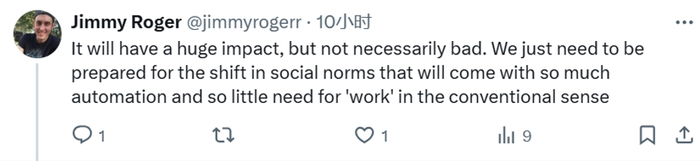 但也有部分网友保持冷静态度,表示:“这个影响肯定不小,但也不见得都是坏事。关键是,咱们得提前做好准备,自动化会越来越普遍,而对传统工作的需求会大大减少,肯定会带来社会规则的大变动。”