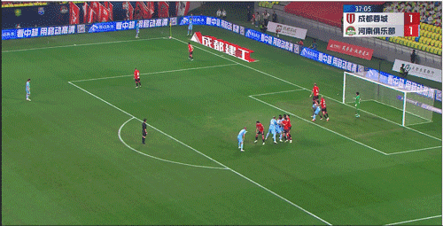 第37分钟,河南左路角球开出,科维奇甩开胡睿宝头球破门,1:2,河南队反超比分!