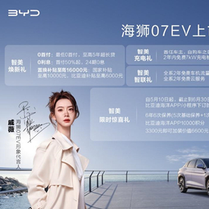 即日起,订购海狮07EV可享0首付0利息、置换补贴至高16000元、全系2年免费车机流量(5GB/月)等多重丰厚福利。截至6月30日前,成功在比亚迪海洋APP/小程序下订的用户,可享受6年6次保养、比亚迪海洋APP10000积分等限时惊喜礼。