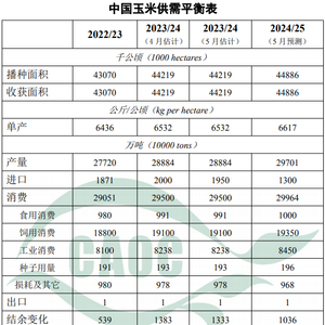 原标题:2024年5月中国农产品供需形势分析 来源:南方小麦网