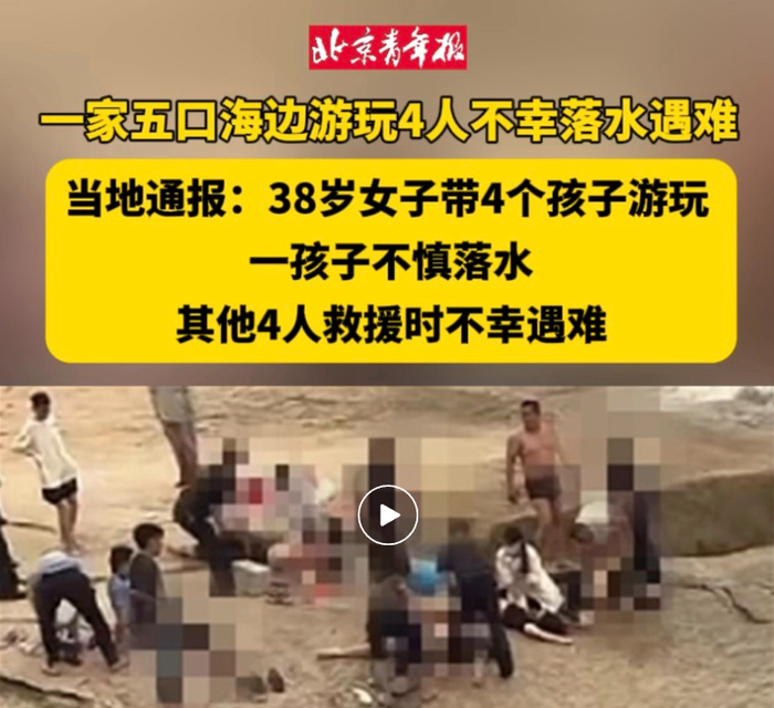据查,湖东镇宁光社区居民林某(女,38岁)趁天晴,带着自己的4个孩子到居所附近的开放海滩游玩,期间一孩子不慎落水,林某和其他3名子女情急之中救援时先后落水。