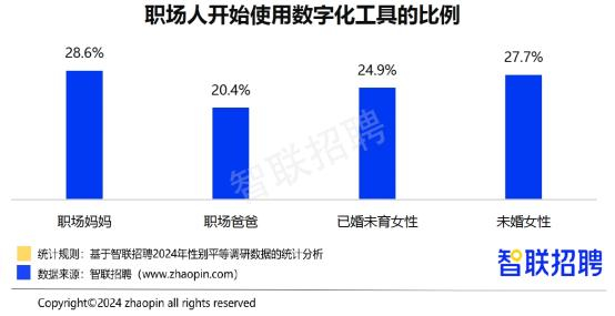 28.6%职场妈妈已经开始使用数字化工具,占比高于未婚女性和职场爸爸
