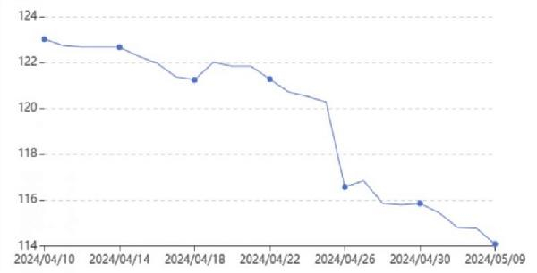截止至2024年5月9日,“菜篮子”零售价格指数122..86,较五一节前(4月25号)下跌3.31%。