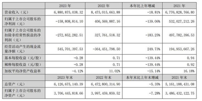 华宏科技4月26日还发布2023年年度业绩报告称,2023年营业收入约68.81亿元,同比减少18.81%;归属于上市公司股东的净利润亏损约1.59亿元;基本每股收益亏损0.28元。
