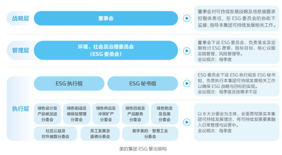 除了持续强化公司治理外,美的集团还高度重视可持续发展,通过下设的环境、社会及治理委员会(ESG委员会),确保了对ESG战略的监督、指导和落实。ESG委员会的成立,不仅体现了美的集团对环境、社会责任和公司治理的全面关注,也彰显了其在推动可持续发展方面的领导力。