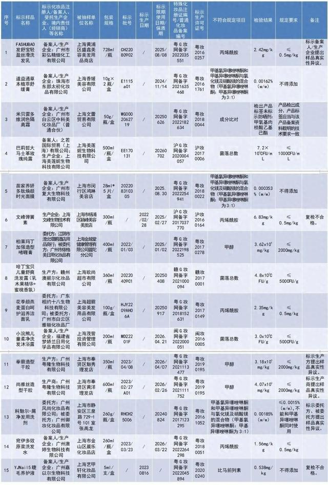 为加强化妆品质量监督管理,规范市场秩序,保障消费者化妆品使用安全,我局组织对本市化妆品生产经营企业实施了质量监督抽检。本期对15批次不符合规定化妆品进行通告。