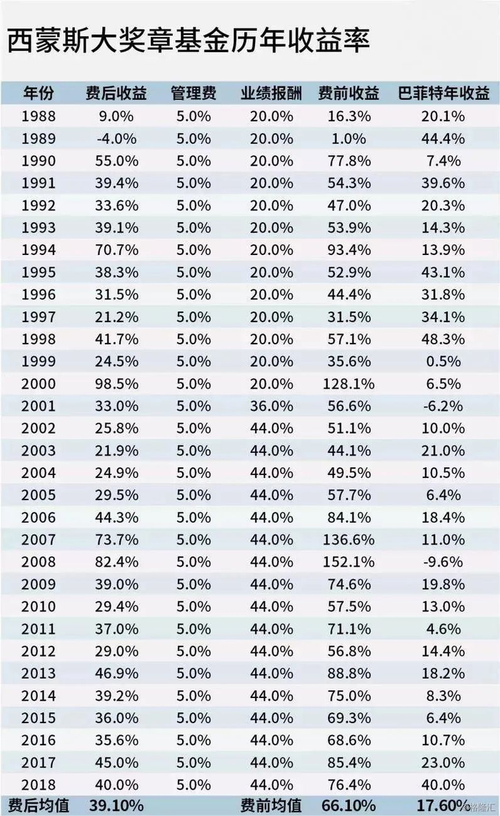文艺复兴科技旗下的第一只基金产品——大奖章基金被称为“印钞机”。数据显示,在1988年到2018年期间,大奖章基金费后年化收益率高达39%。