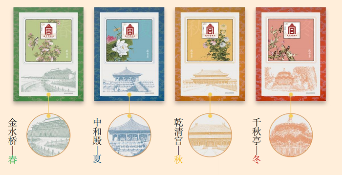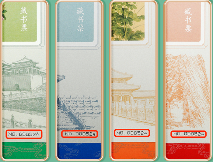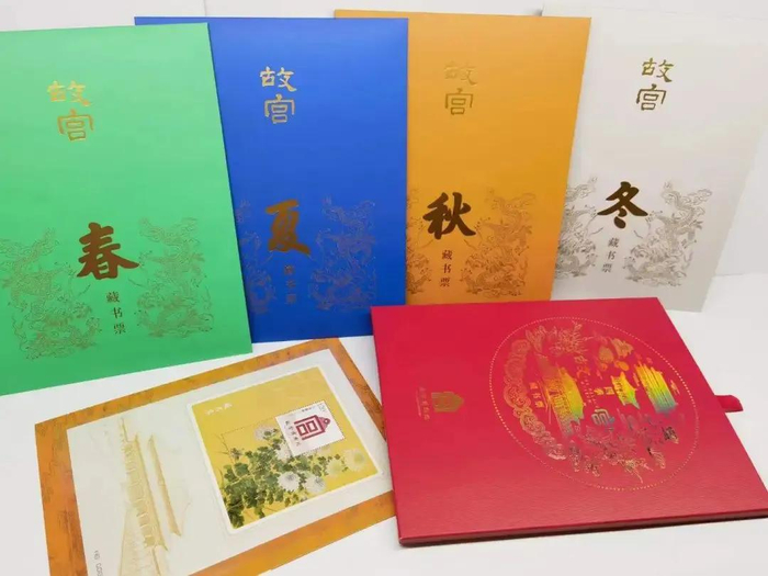藏书票内包装,汲取故宫四季色彩之精华——春天的新绿、夏日的碧蓝、秋季的金黄、冬天的洁白,设计巧妙,色彩斑斓,令人一眼倾心。