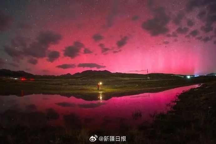 博州赛里木湖等多地出现罕见极光。